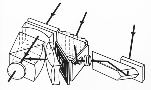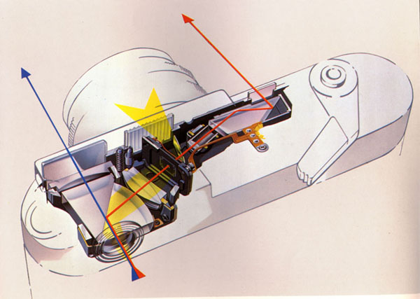 Remarquer, sur ce schéma en "3 D" du viseur du Leica M3 :