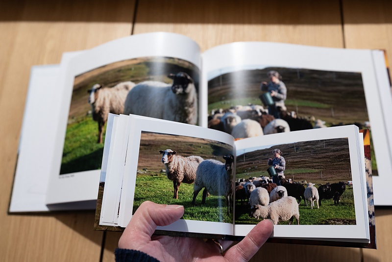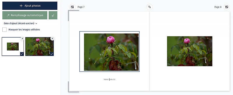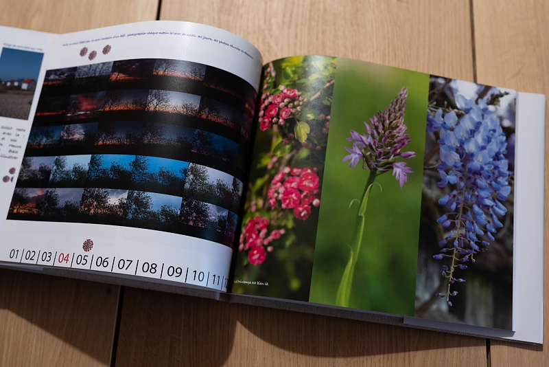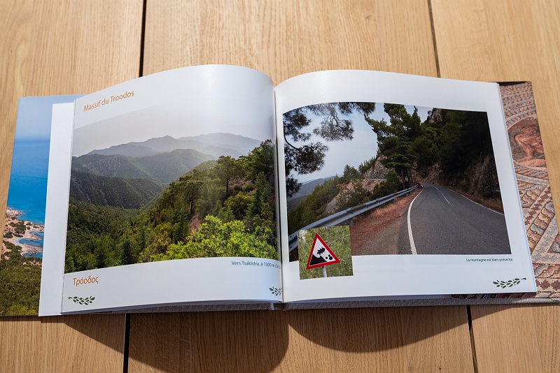 Voir en plus grandDes éditeurs comme le module d'Adobe Lightroom Classic (qui permet directement de commander chez Blurb) permettent de placer des images de fond (avec plus ou moins de transparence). J'en joue pour placer facilement des bordures (qui peuvent varier d'une page à l'autre). Ici, des rameaux d'olivier pour un album sur Chypre, pour rappeler ceux présents sur le drapeau national.