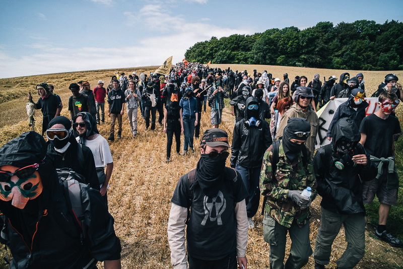 10. Un appel à une manifestation de réoccupation est lancé quelques semaines plus tard. Des centaines de militants répondent présents, en provenance de toute la France, mais aussi d'Allemagne, de Belgique et même de Finlande, où un projet d'enfouissement similaire a été approuvé fin 2015. La plupart des Français ont déjà participé à d'autres actions de contestations, comme la lutte contre l'aéroport de Notre-Dame-des-Landes, le projet d'un Center Parc à Roybon ou celui du barrage de Sivens.