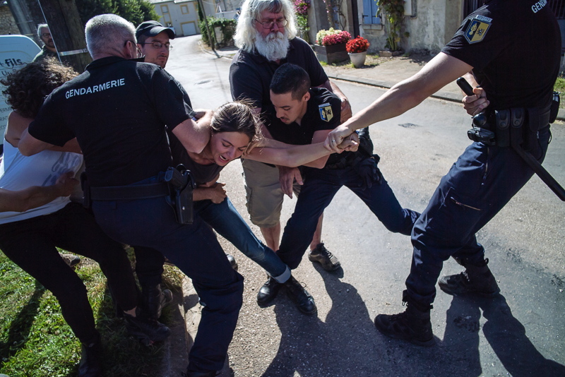 9. Les opposants fuient lors de l'expulsion du bois Lejuc, cernés par les gaz lacrymogènes. C'est avec l'aide d'habitants qu'ils parviendront à s'échapper. Ce jour, un militant sera arrêté puis condamné à 6 mois de prison avec sursis, une amende et une interdiction de pénétrer dans le département de la Meuse pendant deux ans.