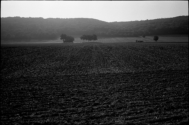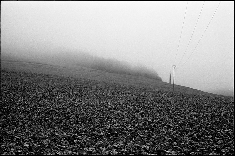 Hâte toutefois de te retrouver en argentique car pour ma part le numérique sur ce sujet, tant en couleurs que finalement en noir et blanc (devenu trop lisse et trop chirurgical) m'éloigne de ta magie habituelle. Ce ne sont souvent pas grand chose tes images, du blé, un arbre, un chemin sinueux, des roseaux en bord d'étang, mais c'est un monde à part, le tien, qui se dévoile par petites touches à chaque fois. Alors oui, je reconnais ici les paysages et les ambiances mais il me manque cette alchimie particulière dont toi seul à le secret.