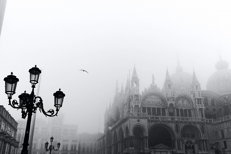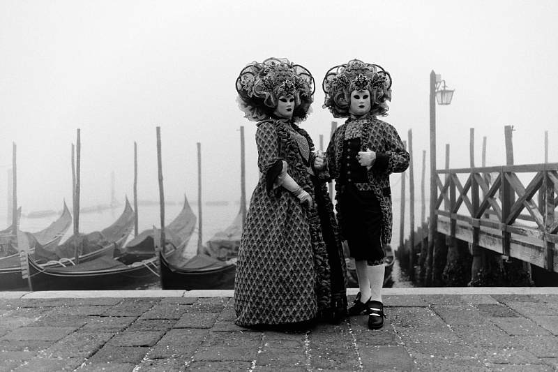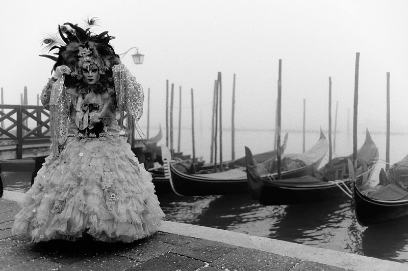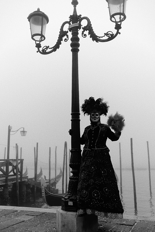 Une belle ambiance à Venise dans le brouillard pendant le carnaval.
