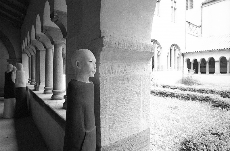 J'ai croisé ces moines dans le cloître de l'église Saint-Pierre-le-Jeune, à Strasbourg. Des trappistes sans doute : je n'ai pas réussi à leur arracher un seul mot... "Ils communiquent, conversent quelquefois avec un monde invisible, avec l'éternité. Parcourant le temps, ils ne se laissent surprendre ni troubler. Ils vont à la rencontre de nos origines, parfois les rappellent, nous les indiquent. Ils évoquent l'indicible, on peut y lire le subtil de la vie, ils sont fenêtre ouverte vers l'intérieur..." - Gaby Kretz, sculpture "La netteté est un concept bourgeois" HCB "There is nothing worse than a sharp image of a fuzzy concept" Ansel Adams |