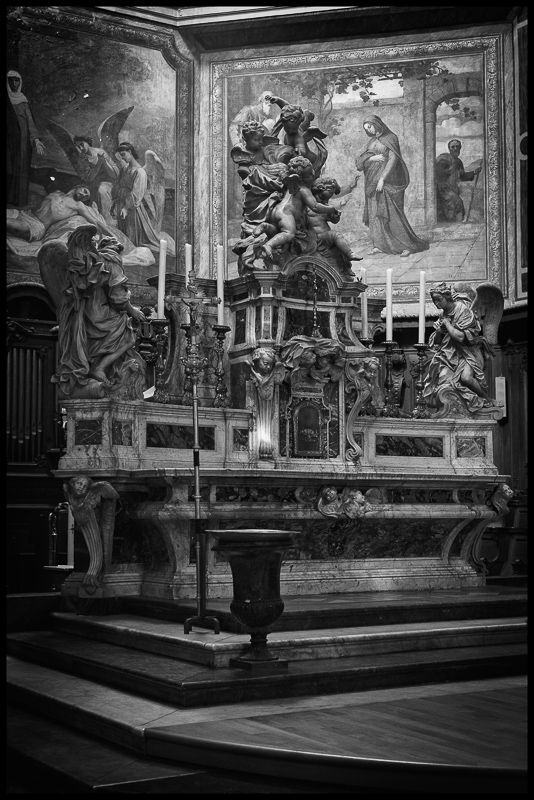 Merci, Igemo. Je ne partage pas ce besoin d'opposer systématiquement argentique et numérique, surtout quand on passe par un moyen numérique pour matérialiser l'image argentique (Je n'ai plus de labo et de toutes les façons, je n'aurais pas le temps en ce moment). Il n'en reste pas moins que le modelé particulier du couple optique (ie Zeiss ici) et du film, Acros 100 qui est un film très agréable par sa gamme de gris et sa texture dans le LC 29 (1+19, 4 mn 45, agitation continue pendant 1 minute puis quelques tours toutes les 30 secondes à 20 °c), est bien rendu par un bon scanner. La dynamique du film permet d'avoir toute la gamme, ici un cygne blanc sur fond d'eau noire avec tous les détails, sensation retrouvée ailleurs. Un fichier numérique bien traité permet souvent d'arriver au même. Le "rendu" est une discussion infinie. En jouant sur l'accentuation, on peut modifier la netteté "exagérée", au rasoir comme auraient dit certains, de certains fichiers numériques martyrisés. A la toute fin, seul le résultat sur papier compte |