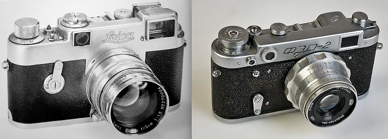 Bonjour, voici le prototype du Leica M3 (appelé Leica IV, de 1935), versus le FED 2 (1955).Le Leica M3 étant sorti en 1954. Quelques affinités, électives? LE FED 2 est plus réussi, côté intégration des commandes dans le boitier que le Zorki 4, et son viseur comporte un cadre, ce qui n'est pas le cas pour le Zorki. ![]() |