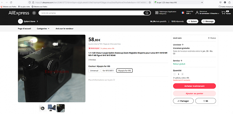 Bonjour , autre option si vous n' avez pas de Leica store près de chez vous , aller chez votre opticien avec votre boitier préféré et lui demander d' interposer entre votre oeil et le viseur des verres correcteurs ; vous trouverez rapidement la bonne valeur et il ne vous restera plus qu' à les commander . |