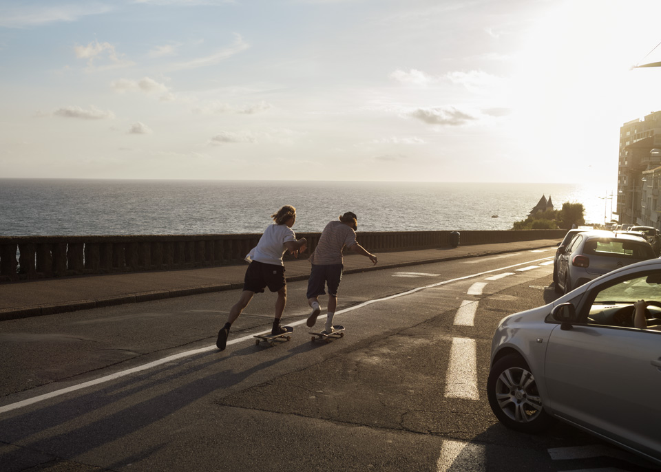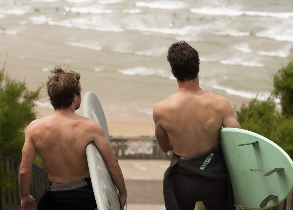 Á Biarritz, sur la Côte des Basques, les surfeurs se jètent á l'eau. Sous un ciel souvent clément, les prouesses athlétiques, les soirées arrosées, et les idylles d'été se suivent et se ressemblent. C'est la saison, c'est la jeunesse ; partout un peu la même, mais toujours unique et éxaltée. Le vent d'est se lève, chargé de parfums d'iode, de crème solaire et de wax ; aujourd'hui les vagues seront bonnes. ![]() ![]() ![]() ![]() ![]() ![]() ![]() ![]() ![]() ![]() |