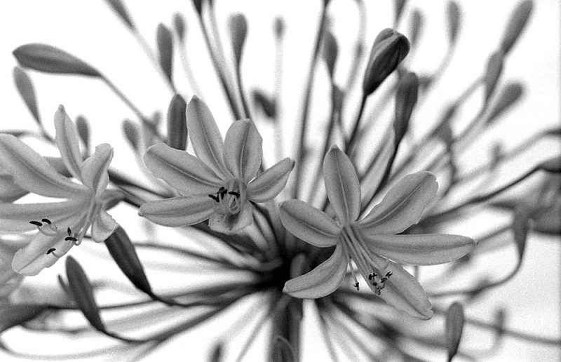 La suite est belle aussi. Notamment l'Agapanthe. Même si j'ai du mal à contempler la flore en noir et blanc. Cela lui sied moins que la faune, je trouve. |