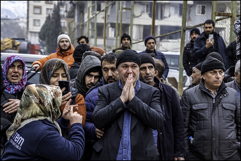 Photo 4 : Turquie, centre-ville de Kahramanmaras : Une angoisse silencieuse, les yeux fixés vers l'au-delà, chaque minute semble durer une éternité alors que l'attente insoutenable se prolonge.