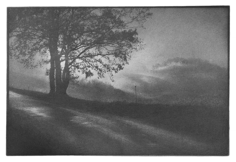 Steamer Ce travail est une tentative de rendre l’atmosphère si particulière des Pyrénées de mon enfance. Chaque hiver est l’occasion d’y retourner moissonner les matrices que j’encre patiemment et minutieusement le reste de l’année. Ce sont des « notes d’hiver » que j’ai choisi d’intituler Steamer, me projetant chasseur de brume et d’intangible, invitant à regarder ces paysages non pas avec un œil physique, mais avec l’œil de l’esprit. Mon ambition est de placer ma photographie au carrefour du poétique et de l’intime, tout en gommant le sujet. Ces espaces infinis sont de façon surprenante très rassurants. C’est une photographie de paradoxe qui veut amener le spectateur vers une méditation poétique. Cette série de tirages bromoïl est le résultat d’une intervention pictorialiste dans le processus de création de l’image. Je travaille avec les outils du peintre et ceux du photographe : pinceaux, pigments et négatifs. Les images sont obtenues par une succession de couches d'encre noire, puis dépouillées dans un bac d'eau. Ces différentes étapes permettent tout un travail sur la lumière : il s’agit de l’écrire autrement, donnant ainsi libre cours au processus de création et d'interprétation. Matériel utilisé : - Leica MP - summicron 50 V3 - Film : Tri-x 400 - Tirage Bromoïl - Encre taille douce Charbonnel sur papier baryté Foma |