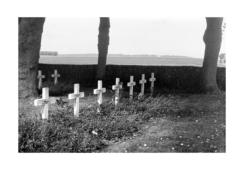 Merci Mitchel pour ton commentaire. J’aime beaucoup les petites feuilles sur la pelouse de la 10. Ce cimetière se trouve entre Lens et Arras sur le lieu de combats terrifiants en en point extrêmement fortifié du front allemand. C’est un cimetière tchécoslovaque. La division marocaine du Général Blondlat qui a enfoncé le front d’Artois en 1915 au côté des 70e DI (Fayolle) et de la 77DI (Barbot) comportait, au côté de spahi et de zouaves plusieurs régiments de marche étrangers dont un régiment Nazdar tchécoslovaque et un régiment Bayon polonais. Le front d’Artois porte les fondations d’indépendance de nombreuses nations: Canada Tchécoslovaquie, Pologne y ont vu consacrée leurs légitimes aspirations. C’est un fait extrêmement peu connu aujourd’hui. J’en profite pour dire que vos réflexions m’ont conduit à reprendre la sélection et le traitement de les images d’Artois. J’ai maintenant une sélection restreinte de 46 images dont certaines inédites sur Summilux et après avoir retravaillé leur présentation, je pense faire une nouvelle publication sur le forum dans la partie reportage. Quand il se promène, le photographe voit le même spectacle que tout le monde. Mais lui, il va s'arrêter pour regarder. E Boubat |