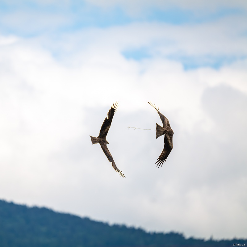Bonjour à toutes et à tous Pour une fois, je suis présent quand les champs en dessous de mon terrain sont fauchés. J'ai eu droit à un festival de rapaces, buses variables et milans noirs qui profitent des proie faciles dans les herbes coupées. J'ai eu beaucoup de déchet, mais j'ai pris quelques unes de mes plus belles photos de ces oiseaux qui m'ont toujours fasciné. SL2 + "bazooka" 150-600. Les meilleurs résultats en vol ont été obtenus avec la configuration {obturateur électronique + stabilisation ON + priorité aux zones claires + AFS (paradoxalement) + reconnaissance des personnes + rafale 6 fps + ouverture maxi + vitesse > 1/1600s + compensation +1 à +1 2/3}. Le mode "AF Poursuite" ne fonctionne pas bien avec moi et le taux de déchet est > 70% en AFC. 1) Cercles lointains (1 buse et 2 milans) : ![]() 2) Idem : ![]() 3) On se rapproche (milan noir) : ![]() 4) Freinage d'urgence (milan noir) : ![]() 5) Cible accrochée ! (milan noir) : ![]() 6) Ces oiseaux sont de magnifiques planeurs (milan noir) : ![]() 7) Idem : ![]() (un peu étriqué et fortement croppé pour ré-équilibrer au mieux, mais la lumière sur la tête est superbe) 8) Passage rapide en palier (milan noir) : ![]() 9) Idem : ![]() 10) Buse variable en quasi "high key" : ![]() 11) Idem : ![]() 12) Rase motte (milan noir) : ![]() C'est la configuration qui m'a causé le plus de problèmes et de déchet; l'AF avait souvent tendance à accrocher sur le feuillage du fond... 13) Bagare entre 2 milans : ![]() 14) Rassasié ! (buse variable) : ![]() Qui a dit qu'un AF contraste ne convenait pas à ce genre de cible rapide Content je suis . Il reste un champ à faucher; j'espère que je serai là.Cordialement, Stef. |