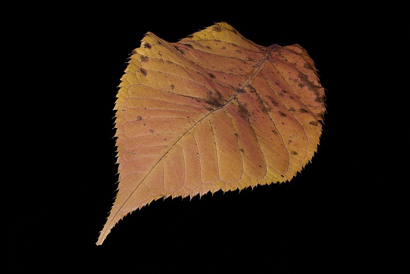 Feuille fanée trouvée dans le jardin. Pile de 25 images (longueur de la feuille = 16 cm). Première utilisation du rail Novoflex Castel-Cross-Q + poignée de réglage fin : un régal pour faire rapidement la série de 25 photos avec un pas régulier. ![]() |