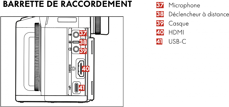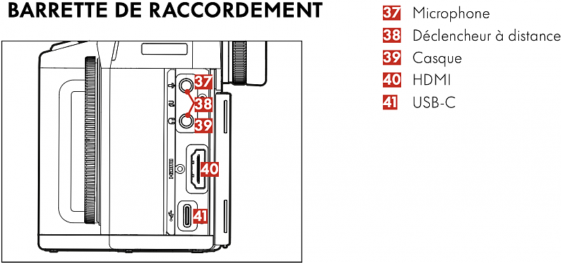 gautier a écrit : Ajout de la fiche technique, du mode d'emploi et du mode d'emploi succinct du Leica SL3-S.C'est en me renseignant sur la compatibilité des télécommandes que j'ai repéré cette version qui porte la même référence que la première. Dans la première version, je voyais ceci : ![]() Le port 38 pour "déclencheur à distance" ne ressemble pas à grand chose de connu. Des utilisateurs m'indiquaient que la télécommande du SL type 601 (dotée d'une prise spécifique, nécessitant de bricoler pour aller plus loin que le simple déclencheur, voir ici) n'était pas compatible mais que celle prévu pour les SL2 ou SL2-S (Leica 160066) convenait. Ce qui veut dire qu'on s'attend à un port jack. Par ailleurs, je vois ceci dans la notice succincte : ![]() Le port précédent est dessiné mais n'est plus légendé. Le "déclencheur à distance" semblant accepté par les ports 37 et 39 qui ressemblent bien à des jacks. Bizarre. J'ai alors regardé si les notices avaient évolué. Le mode d'emploi succinct semble inchangé. Mais le mode d'emploi complet a changé. La nouvelle version montre un schéma cohérent avec le modèle succinct : ![]() J'ai un peu cherché pour avoir autres choses que les images officielles Leica. Le port 38 est bouché en réalité. Leica a dû changer de système au dernier moment, sans changer les symboles imprimés. ![]() (image réalisée sur mon SL3-S personnel une fois reçu) |