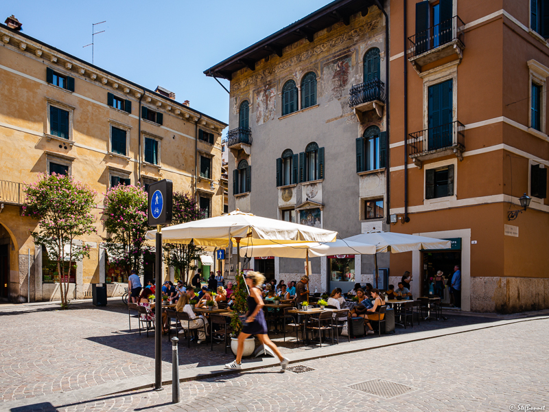 Bonjour à tous, Lors de notre séjour à vélo au Sud du Lac de Garde (voir le fil viewtopic.php?f=29&t=92610), nous avons fait une escapade en train dans la magnifique cité de Vérone, toute proche. En voici un aperçu au M. J'ai sélectionné une trentaine de clichés. Pardon d'avance pour la longueur de ce fil en plusieurs étapes; il m'est difficile de choisir tant j'ai trouvé cette ville riche et photogénique. 1) Porta Bra ![]() 2) Piazza Bra ![]() 3) Les arènes, au fond de la Piazza Bra. ![]() 4) Piazza Bra, depuis le haut des arènes. ![]() 5) Sortie des gladiateurs... ![]() 6) Vertigo. ![]() 7) Castelvecchio. ![]() 8) Vue sur les quai de l'Adige depuis le Ponte di Castelvecchio. ![]() 9) Accident de déclenchement... ![]() 10) Hors le Ponte di Castelvecchio. ![]() 11) Sur le Ponte di Castelvecchio. ![]() 12) Bella regazza pressée. ![]() 13) Belle rue fleurie (mais que ces lampadaires sont moches !) ![]() 14) Piazza Erbe. On y vend maintenant des chapeaux pour les touristes ![]() 15) Le Lion de Saint-Marc est partout présent. Ici, celui de la Piazza Erbe. ![]() 16) Vieilles façades de la Piazza Erbe... ![]() 17) ... Sur lesquelles il reste encore quelques fresques. ![]() 18) Ces vieilles bâtisses ont un cachet indéniable. ![]() A suivre, avec le reste de nos pérégrinations véronaises. |