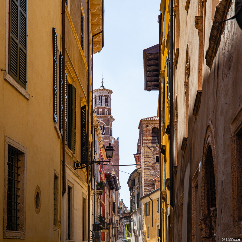 Bonjour, Voici donc une suite. 19) Piazza dei Signori. ![]() 20) Au fond, la Torre de Lamberti (ou Tour de l'Horloge), le campanile de la Piazza Erbe. ![]() 21) L'Adige et le quais depuis le Ponte Pietra. ![]() 22) Ponte Pietra, depuis les berges de l'Adige. ![]() 23) Le Giardino Giusti offre une ballade ombragée et agréable, ... ![]() 24) ... ainsi que des points de vue exceptionnels sur la cité. ![]() 25) Une autre vue depuis les hauteurs du Giardino Giusti. ![]() 26) Idem. ![]() 27) L'église San Anastasia, depuis le Ponte Nuovo. ![]() 28) le Castel San Pietro, vu depuis le Ponte Nuovo. ![]() 29) La Dolce Vita. ![]() 30) On ne peut pas passer à Vérone sans penser à Romeo et Juliette... ![]() ... Mais j'avoue ne pas m'être agglutiné avec les milliers de touristes qui se ruent sous le soi-disant "bacon de Juliette" C'est tout pour cette série. Je dispose de plein d'autres photos de cette intense journée de marche et de découvertes, mais cela finirait sans doute par être un peu répétitif. Cordialement, Stef. |