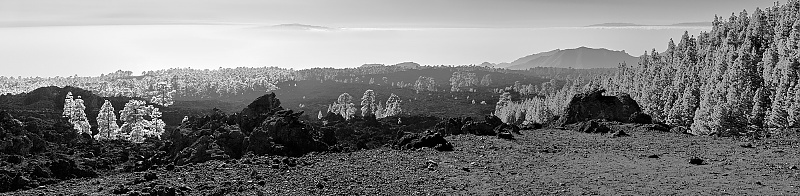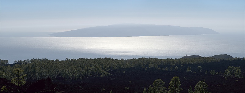 La Gomera (sur l'horizon, un peu à gauche) et La Palma (à droite) prises depuis la route qui conduit au volcan Teide à Tenerife. Assemblage de 3 images. ![]() Voir en plus grand |