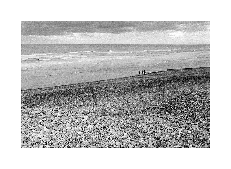 La rive Sud de la baie est constituée de falaises mortes. C'est ici que viennent s'éteindre les falaises de Normandie avant que les infinis massifs dunaires de la côte d'opale ne prennent le relais. L'assaut incessant de la houle forme avec leur silex les plus purs du monde un véritable mur de galets. La plage se fait à la fois digue et carrière. Elle protège les villas estivales de Brighton les pins, alimente l'industrie et permet de recharger dans un véritable travail de Sysiphe le poulier qui protège Cayeux sur mer et les hâble d'Ault ![]() ![]() ![]() Quand il se promène, le photographe voit le même spectacle que tout le monde. Mais lui, il va s'arrêter pour regarder. E Boubat |