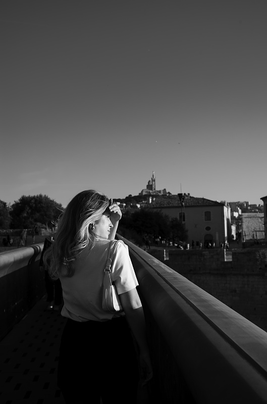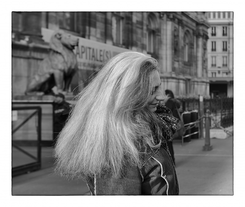 La lumière était belle au bord de l'Arve durantma pause de midi, j'ai demandé à une passante si je pouvais la photographier en prétextant un test d'un viel appareil photo.