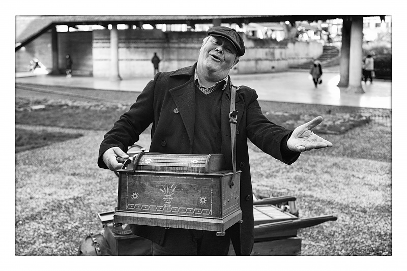Bonsoir, Un chanteur de rue: accompagné par son orgue de barbarie, ![]() mais egalement avec son Seraphin, instrument plus rare: ![]() Les deux clichés au M10-D & Cron 35 Asph. SDe 'Faire face' |