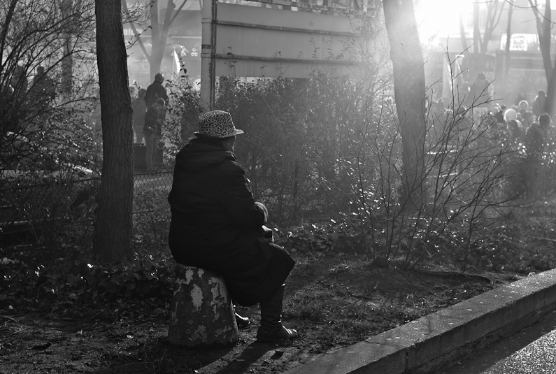 C'est magnifique NicolasTu as bien rendu la diversité du défilé et le comportement vivant et parfois amusant de chaque protagoniste En écho, une photo en NB, un peu décalée : La pause solitaire de la petite dame à l'abri des pétards ![]() "Je prends une photo pour voir à quoi cela ressemblera une fois photographié" G. Winogrand |