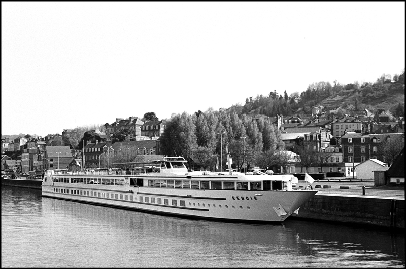 Bonjour. De passage il y a peu à Honfleur (Basse-Normandie), j'ai eu la surprise d'y voir le "Renoir" amarré dans l'un des bassins du port. Il embarquait une centaine de passagers et allait appareiller pour rejoindre Paris en deux jours. Ce bateau a été construit il y a une dizaine d'années dans "mon" chantier naval largement illustré dans ce fil. Hugues Van Rymenam, un ami photographe avait suivi sa construction à l'époque et en avait fait un très intéressant sujet de son site " http://www.fugitif.net ". Paradoxal |