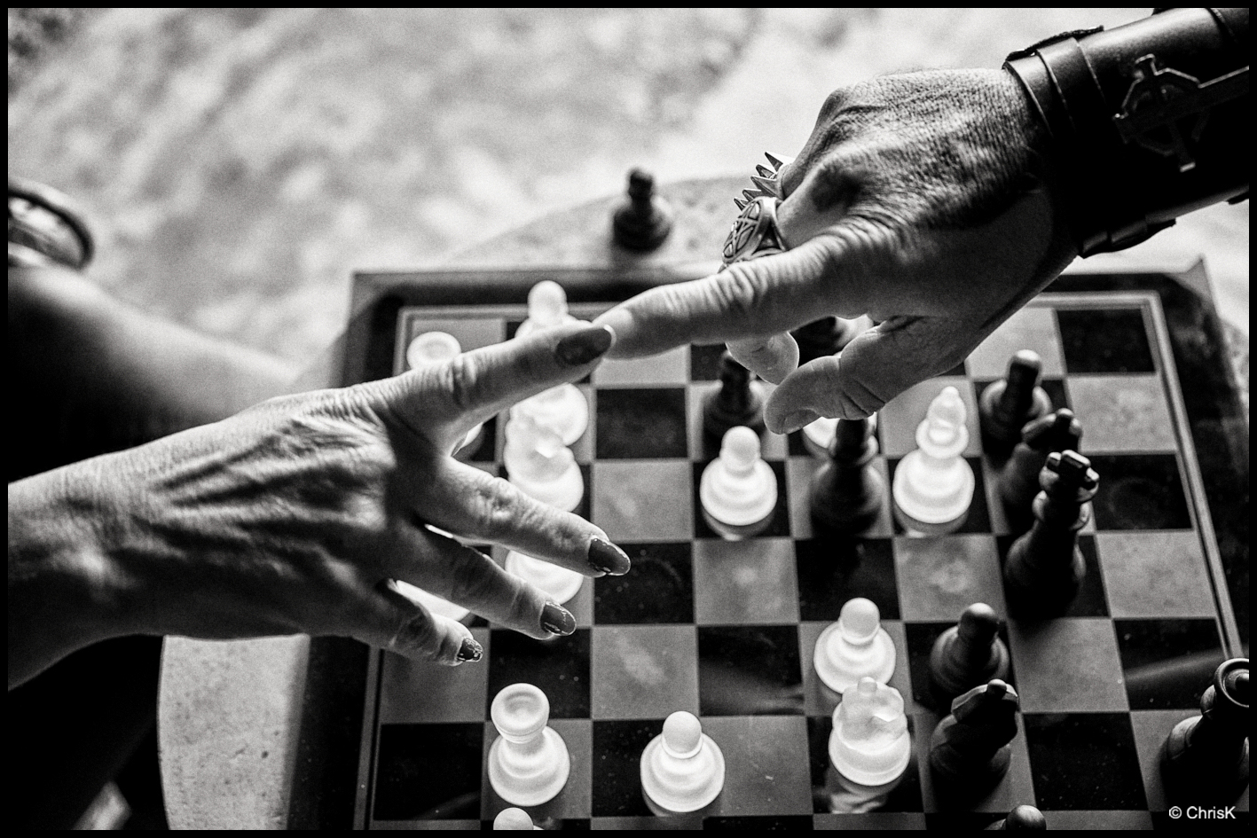 Bonjour, Etant un (modeste) joueur d'échecs, j'aime bien regarder les autres jouer, ainsi que les spectateurs éventuels lorsqu'ils suivent le jeu, comme s'ils jouaient eux-mêmes. Moment "décisif" pris au Jardin du Luxembourg en 2011 : on sent la tension associée au geste. Ted ![]() Comme l’écrivain de Marcel Proust (Le Temps Retrouvé), le photographe n'est qu'un traducteur... |