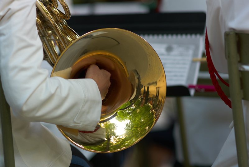 C'est un grand classique, mais ... je trouve le reflet dans le pavillon de l'instrument magnifique, et la la fouragère rouge sur le musicien à droite équilibre l'arrondi de l'instrument ![]() A+
