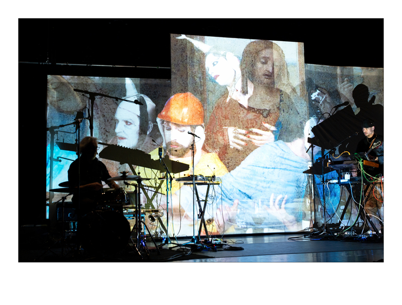 Bonsoir à tous, Deux musiciens, quelques instruments comme la clarinette, la guitare, la batterie ... et des synthés, des boucles, de l'électronique. Une collaboration avec une graphiste et des écrans en fond de scène. Un peintre & sculpteur ... Voilà mes derniers jours de prise de vue lors de leur résidence dans une salle de spectacle : ![]() A+