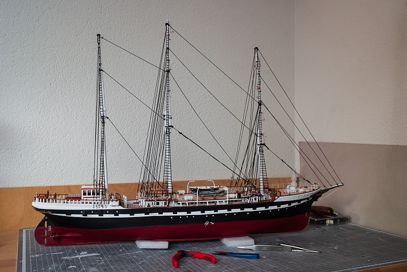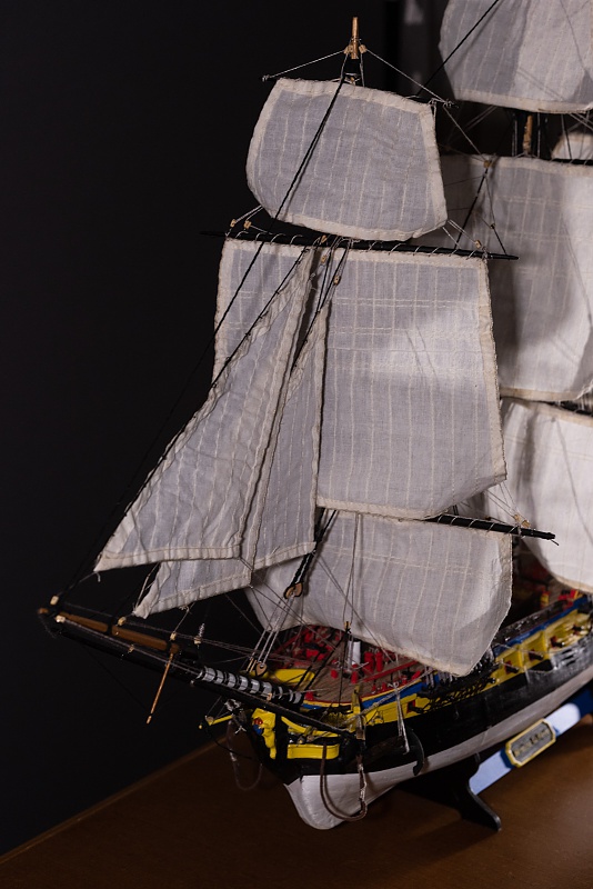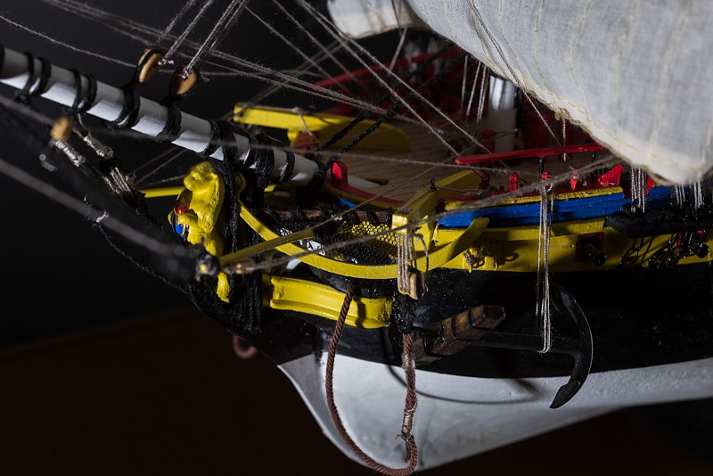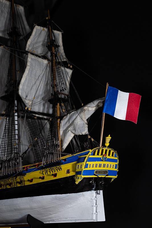 Superbe travail. Personnellement je n’ai fais que des maquettes d’avions parce que le sujet m’a toujours intéressé et parce que c’est beaucoup plus facile que la marine à voile. Juste une petite remarque, le drapeau français est mal orienté. |