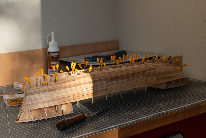 ![]() Bateau-hérisson - J'ai entamé la construction d'une maquette du Belem, le trois-mâts barque français. Pour l'instant, il ressemble à un hérisson avec toutes ces épingles |