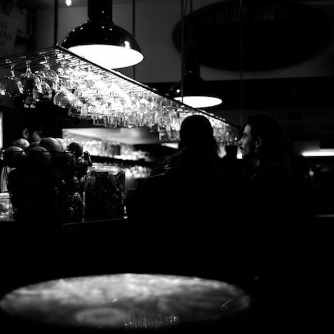 Lepetitpiero, J'été assis dans une terrasse sans éclairage, sans même pas une bougie pour éclairer les tables. Tout à coup, une voiture passe et, en tournant, éclaire le pavé juste devant moi. La photo, est justement ce moment. Merci pour le commentaire.