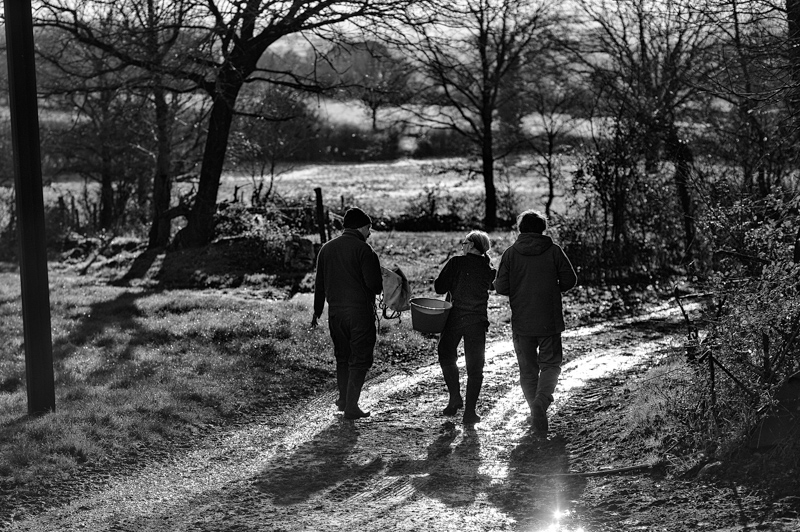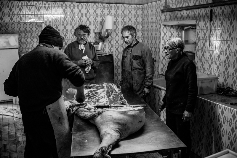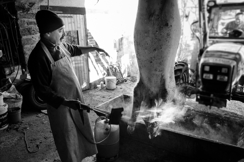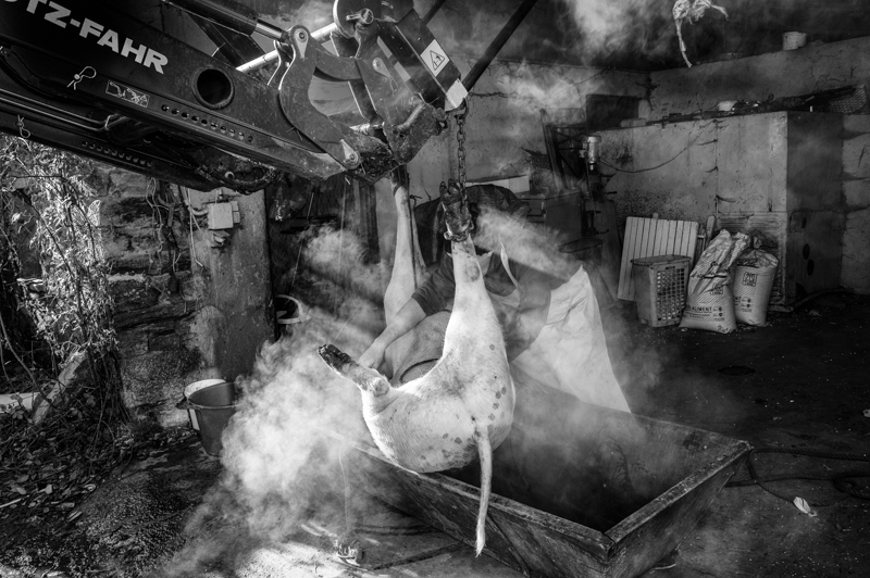 kamabazol Un accident chez un éleveur de la famille nous projette, moi et mon épouse, dans le quotidien d’une exploitation. Nous sommes amenés à travailler quotidiennement dans un élevage de brebis : les agneaux sont élevés sous la mère puis sevrés, ils sont alimentés alors avec les céréales récoltées sur l’exploitation. Nous sommes confrontés à un troupeau de 400 bêtes identifiées et numérotées, à des mises bas en nombre important (plus d’une centaine). L’arrivée de quelques 200 agneaux, l’organisation en parc de tri, la distribution du fourrage sur des tapis roulants, le stockage des céréales en silos, la traite automatisée : l’image du berger avec sa cape, son bâton et son chien est bien loin ! La ferme, que se soit la production de viande ou de lait, est une entreprise complexe où les activités sont programmées : les temps de travail dans l’élevage et dans les champs se superposent. Par ailleurs, persistent des activités dites traditionnelles témoignant d’un savoir faire tout à fait spécifique : l’abattage du cochon en est un exemple. Il s’oppose à l’activité quasi industrielle par son caractère artisanal, il permet de maintenir une qualité dans la fabrication de la charcuterie. Il est la preuve concrète d’une capacité du monde paysan à tenir les extrêmes : d’un côté un travail rationnel organisé, limité, mécanisé, de l’autre une activité ponctuelle créative où l’homme doit s’adapter, inventer en conjuguant les savoirs transmis par la famille et les outils modernes. Il nous est vite apparu que la presque totalité des publications sur le monde paysan qui sont proposées au grand public décrivent une vision romantique et passéiste du monde agricole. Mon projet est donc une publication exposant la situation actuelle pleine de contrastes entre enjeux économiques et choix de vie. Données techniques : Boitier M9 avec 28 ;50 et 90mm leica Traitement sous LR5 et éventuellement SilverEfex pro. liens de photos déja publiées : viewtopic.php?f=23&t=44609 pseudo: kamabazol ![]() ![]() ![]() ![]() ![]() ![]() ![]() ![]() ![]() ![]() ![]() ![]() ![]() ![]() ![]() |