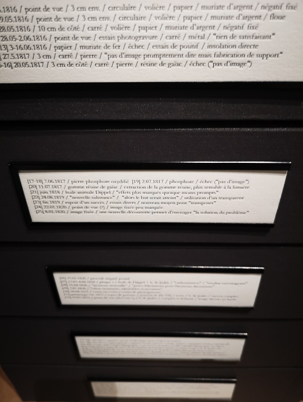 Le hasard a voulu que je retrouve Blaufuks dans une série inspirée de "la table servie", sans doute une des premières images réalisées par Niepce et/ou Daguerre![]() avec des Polaroids un peu pâlis mais fixés ![]() Hanako Murakami a utilisé des boîtes d'archives pour montrer les essais de Niepce qui correspondait avec Daguerre de façon codée pour protéger leurs expérimentations : ![]() Les deux compères ont utilisé toutes sortes de produits, y compris du réséda !!! ![]() En arrière plan, 3 images de Moriyama : sa chambre avec la première photo de Niepce et une pendule arrêtée à l'heure de la bombe d'Hiroshima, le daguerrotype étant stocké auTexas et presque effacé, une photo de Moriyama à St Loup représentant aussi la vision de Niepce, et des reflets de Tokyo dans la photo. ![]() Je suis retourné à la Rotonde et j'ajoute ici quelques images, un dragon japonisant associé à une tenture restaurée partiellement ![]() un reflet de pendule ![]() et la pendule, ou ce qu'il en reste, pour se souvenir que la photographie va avoir deux siècles, Arago ayant entériné ce terme parmi d'autres... ![]() Remercions Emmanuelle de l'Ecotais et PhotoDays d'organiser de telles confrontations pacifiques : https://photodays.paris |