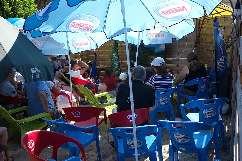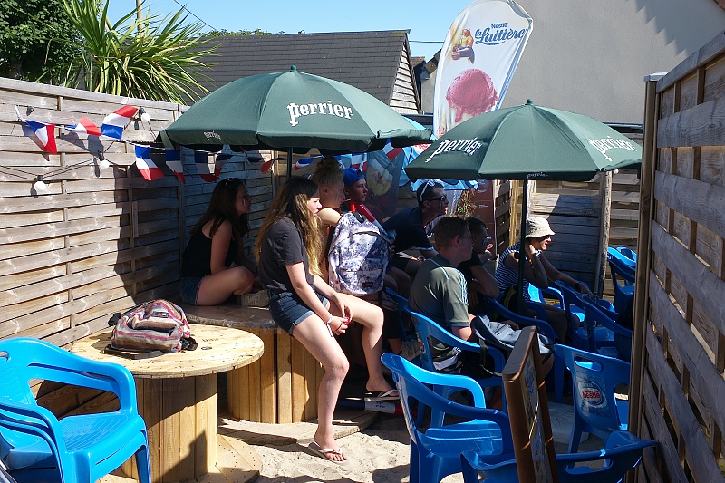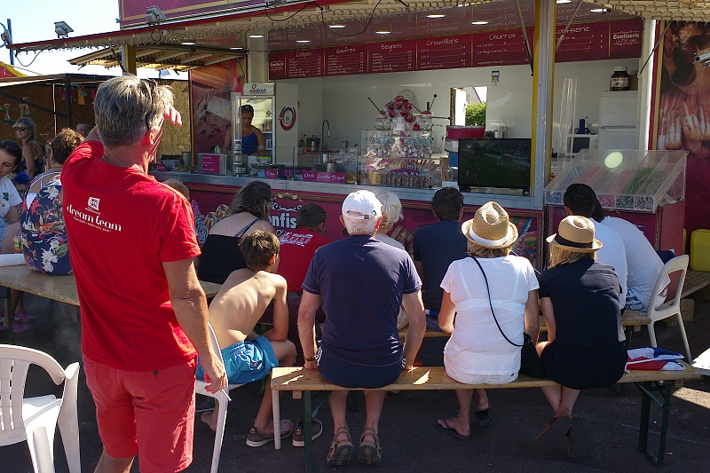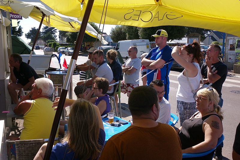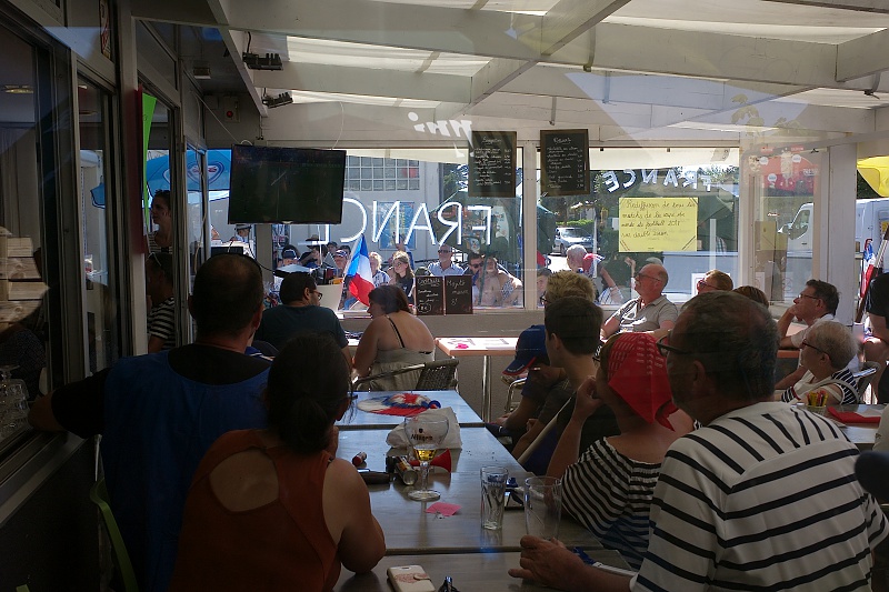 Mondial 2018 / 15 juillet / Saint Germain sur Ay Pas spécialement fan de football il m'est venue l'idée d'aller humer l'air de la finale à Saint Germain sur Ay. En arrivant j'ai été très surpris de voir que les habitants et les touristes étaient présents dans le restaurant, les cafés et même devant le marchand de gaufres sur la place. Le temps était magnifique.