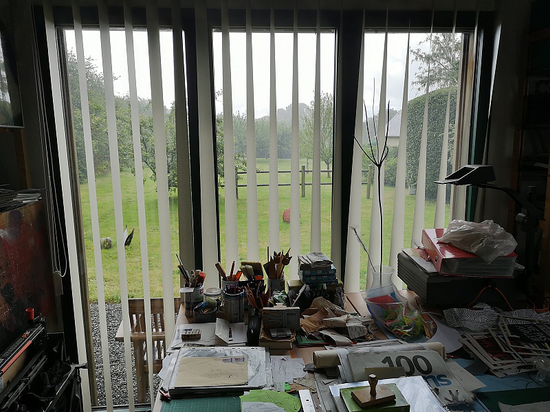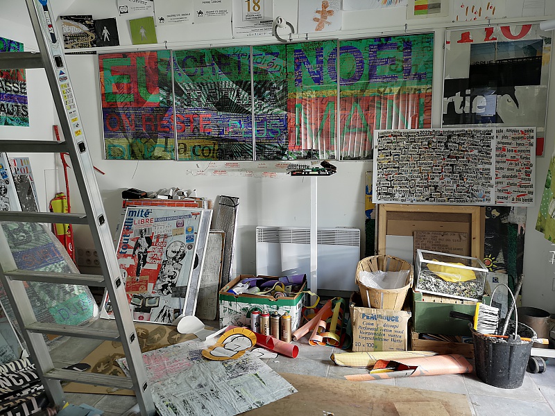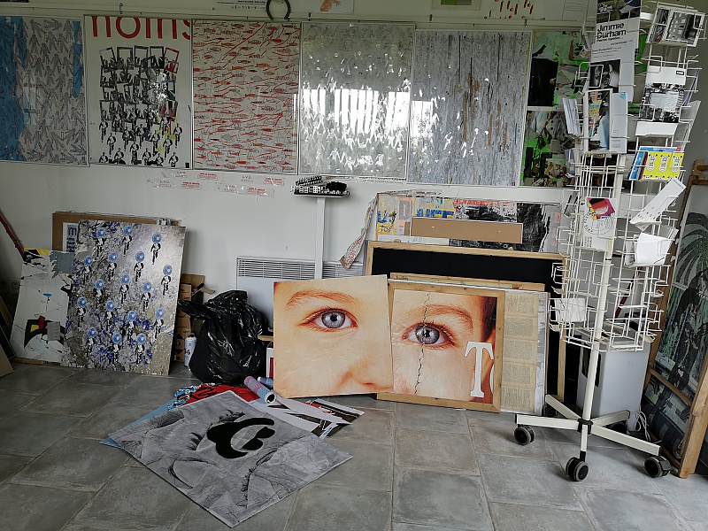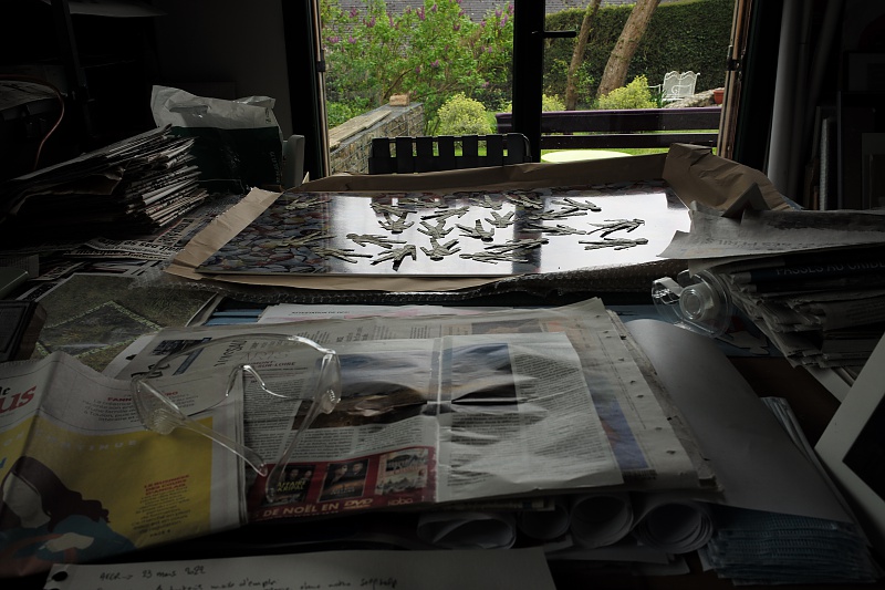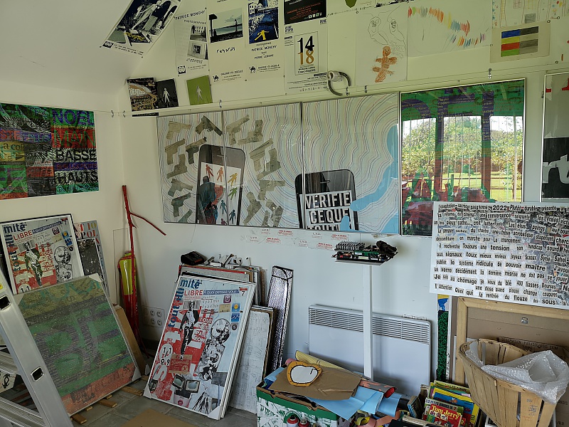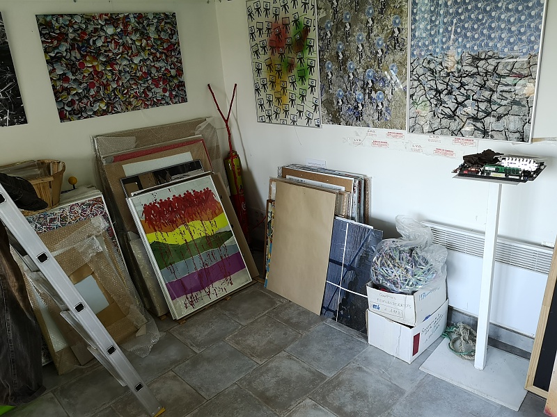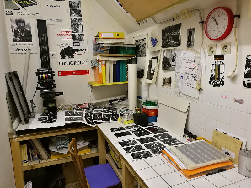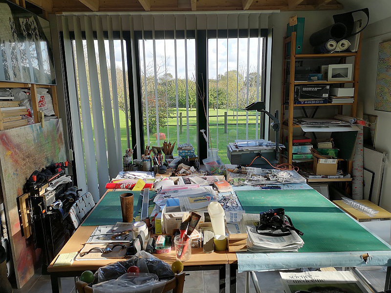 Ces quelques photographies ont été prises dans mon atelier qui se situe dans la Manche (50) à 10 km de Saint Germain sur Ay. J'y pratique surtout le collage comme vous pouvez le constater. il me sert aussi de galerie. Il y a une photographie prise dans mon labo-photo, avec l'agrandisseur Durst 805 tête couleur, labo que je n'utilise plus.