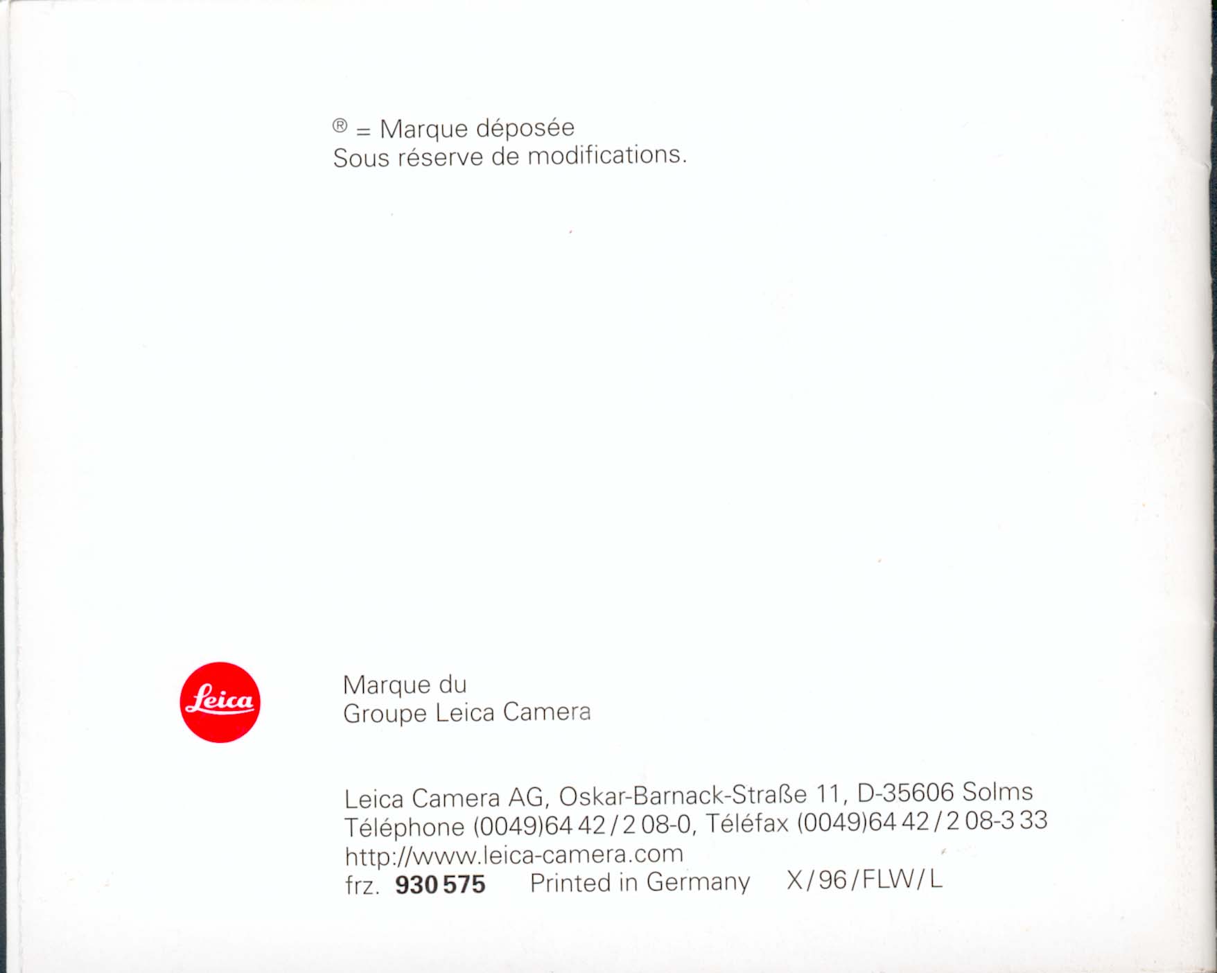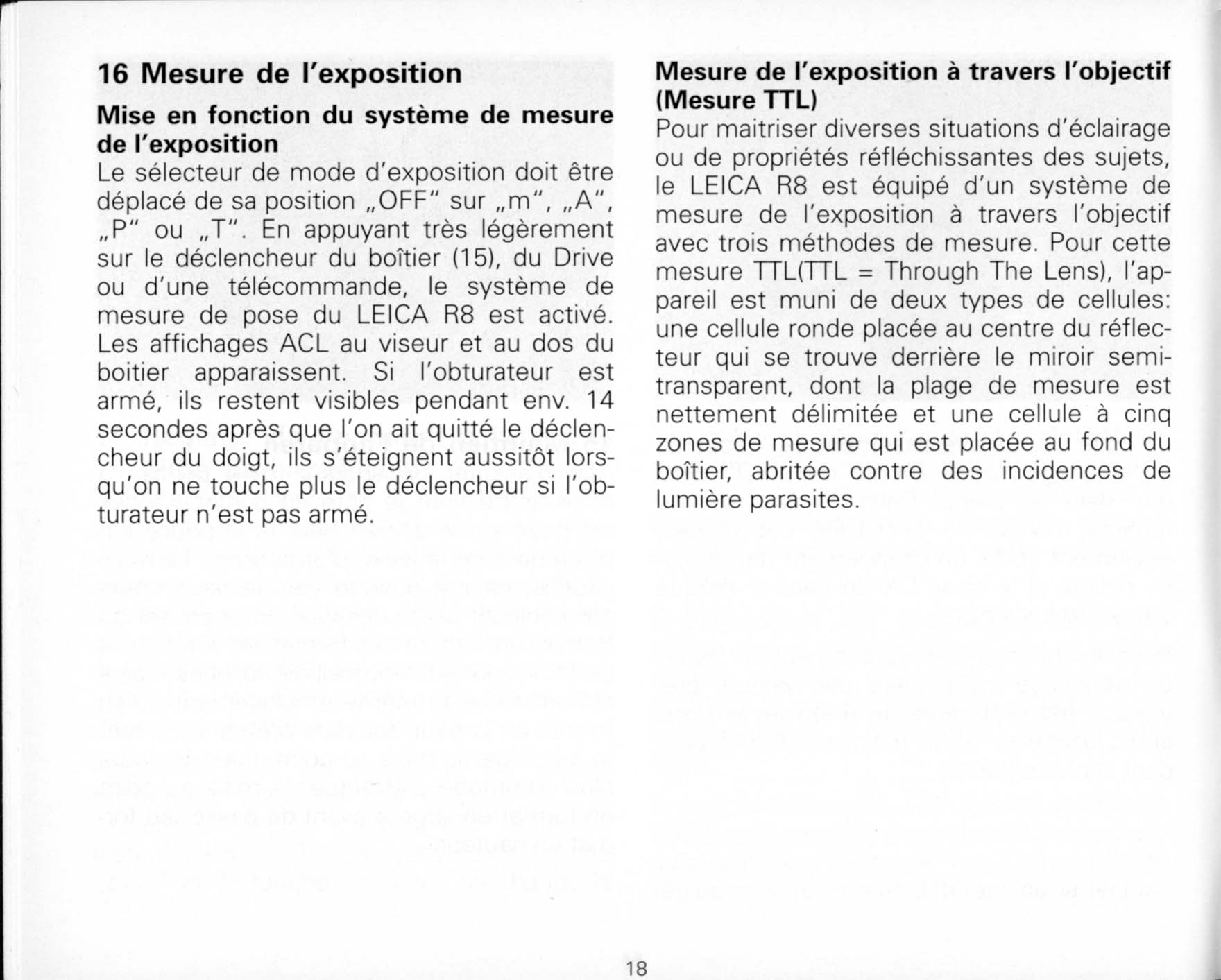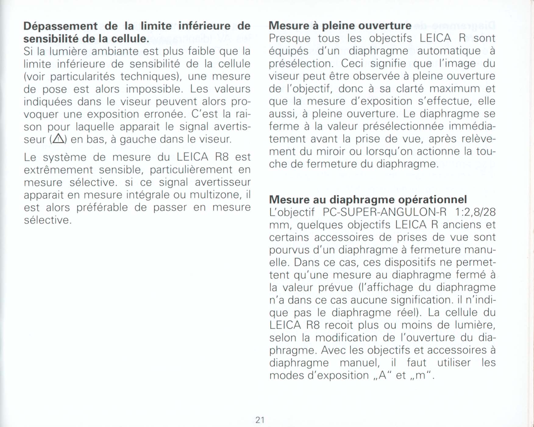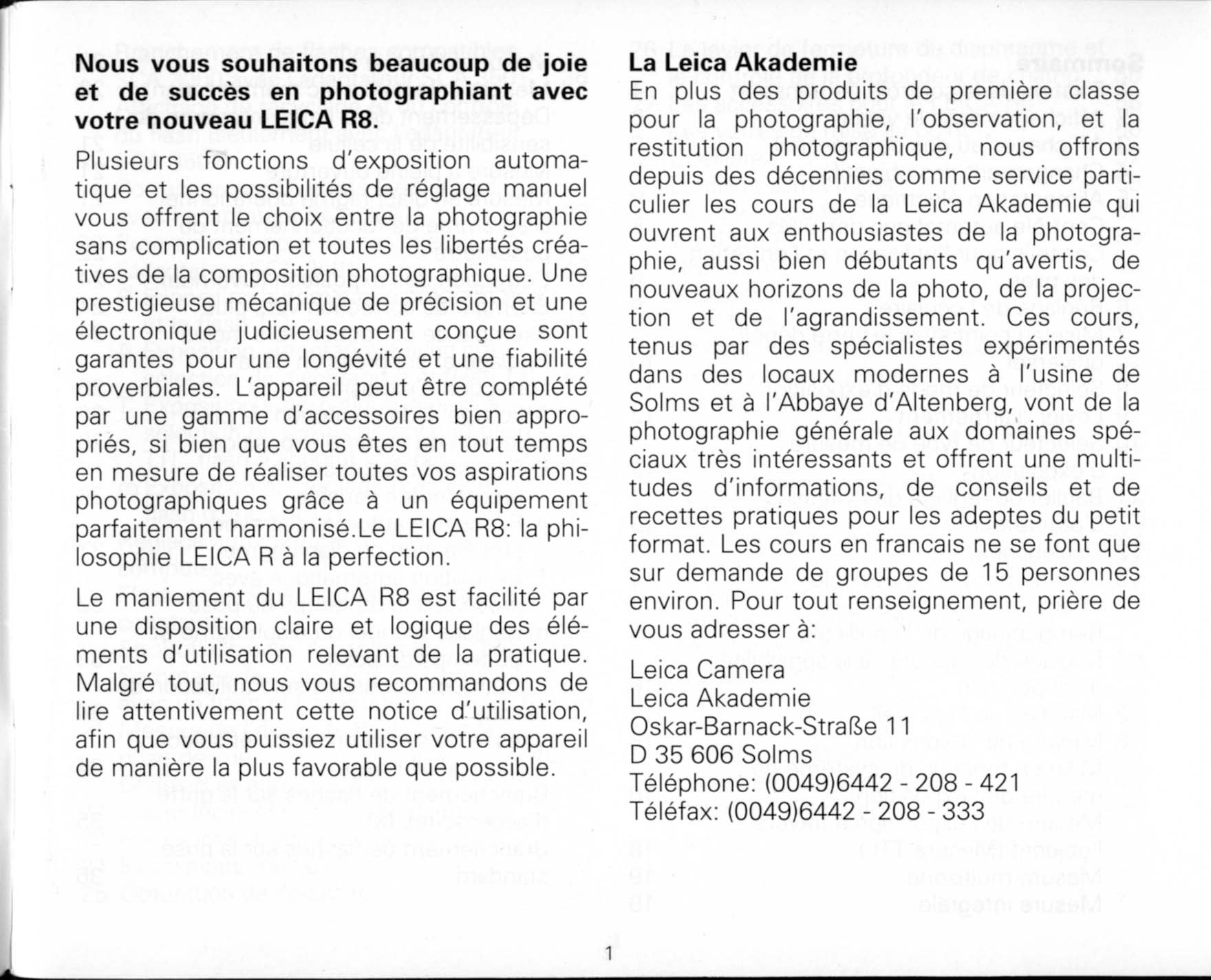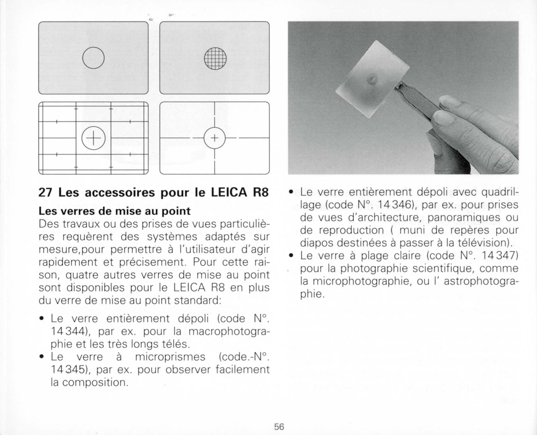 LEICA R8 - Notice d'utilisation Cliquez sur les imagettes pour les agrandir Disponible également au format PDF: 300 ppp [15,9 Mo], 150 ppp [7,3 Mo] ou 72 ppp [2,4 Mo].