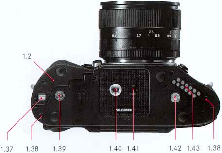 conforméméent à DIN 453, dans la platine du trépied, au-dessous de l'axe de l'objectif.