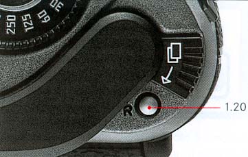 film rembobiné (uniquement avec les Motor-Winder R8/R9 / Motor-Drive R8/R9)