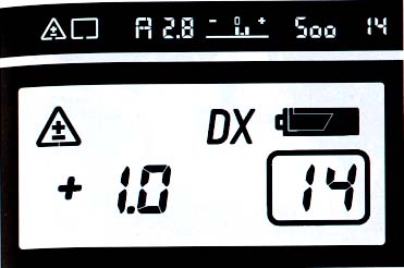 également lorsque la fonction DX est activée, état de charge des piles, affichage d'avertissement
