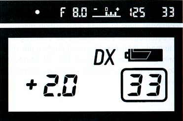 sensibilité du film ajustée manuellement ou de façon automatique, la sensibilité du film codée s'affiche
